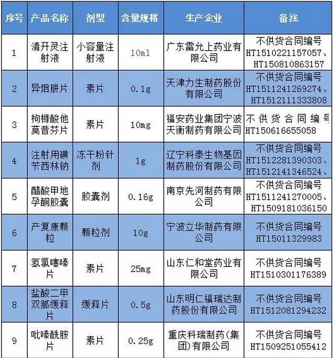 通知稱,根據(jù)《福建省醫(yī)療機(jī)構(gòu)新一輪藥品集中采購實(shí)施方案(2015年修訂版)》、《福建省醫(yī)療機(jī)構(gòu)藥品集中采購履約保證金管理辦法(試行)》(閩衛(wèi)醫(yī)政〔2015〕146號(hào))等有關(guān)規(guī)定和省藥采辦專題會(huì)議決定,現(xiàn)對(duì)重慶賽維藥業(yè)有限公司等24家不能正常供貨生產(chǎn)企業(yè)的32個(gè)產(chǎn)品分別予以撤銷掛網(wǎng)等處理(具體見附件)。被處理企業(yè)是否列入不良記錄,待進(jìn)一步核查后另行公布。